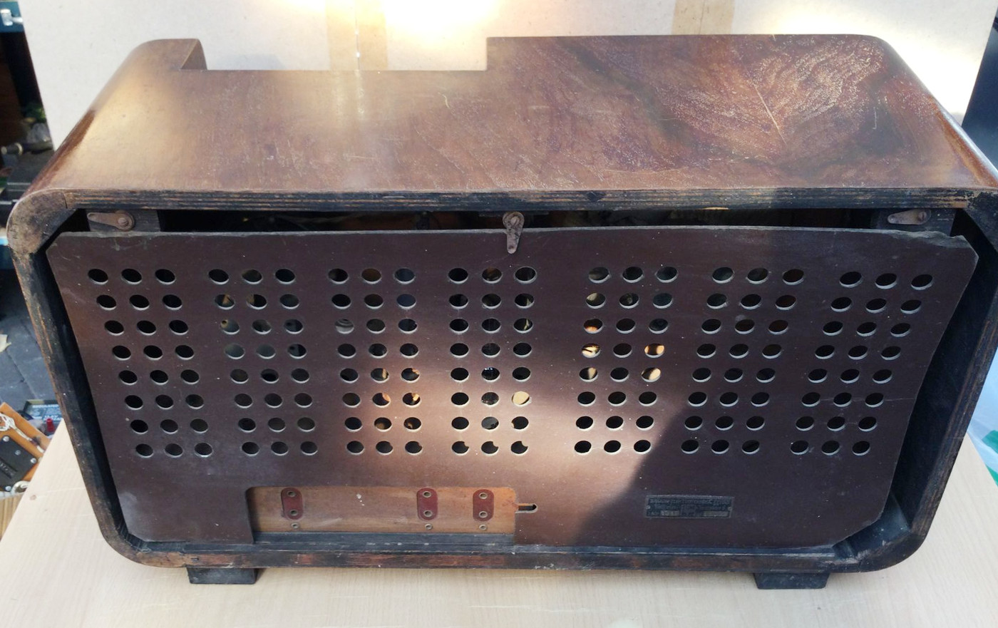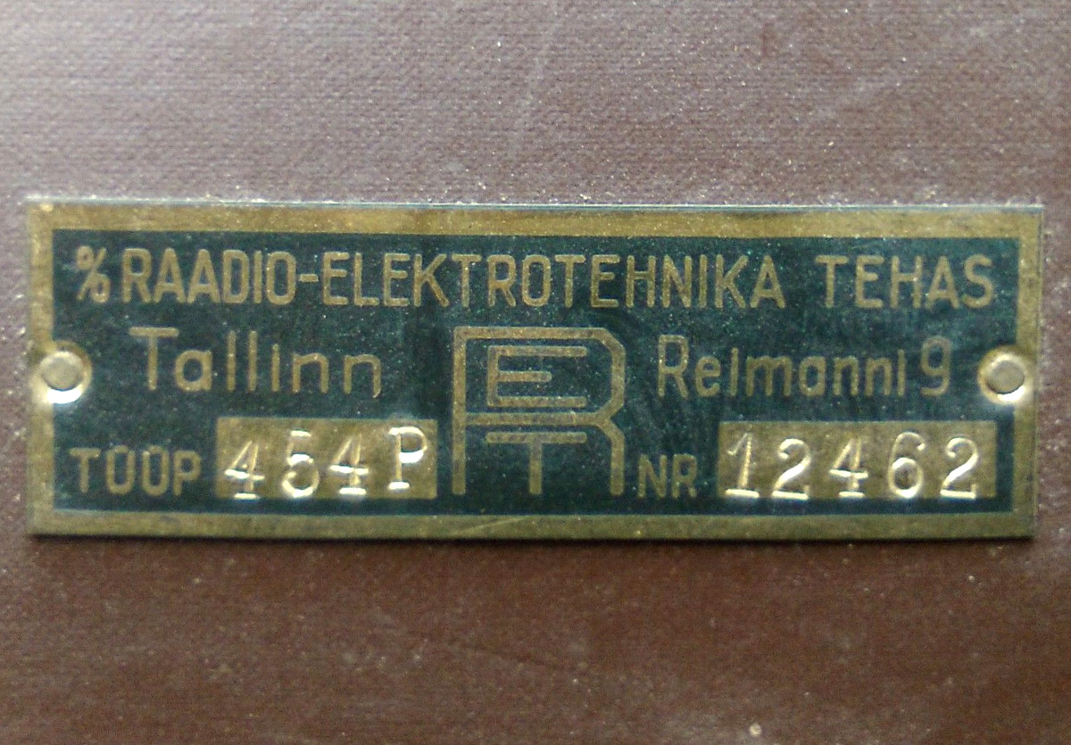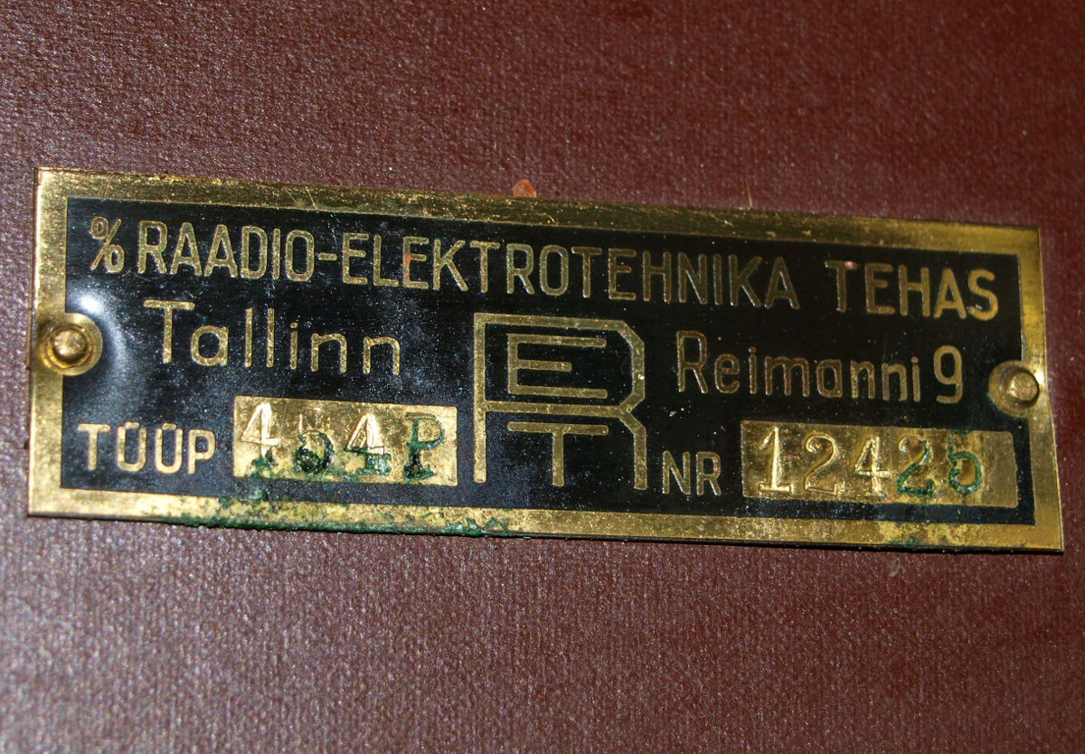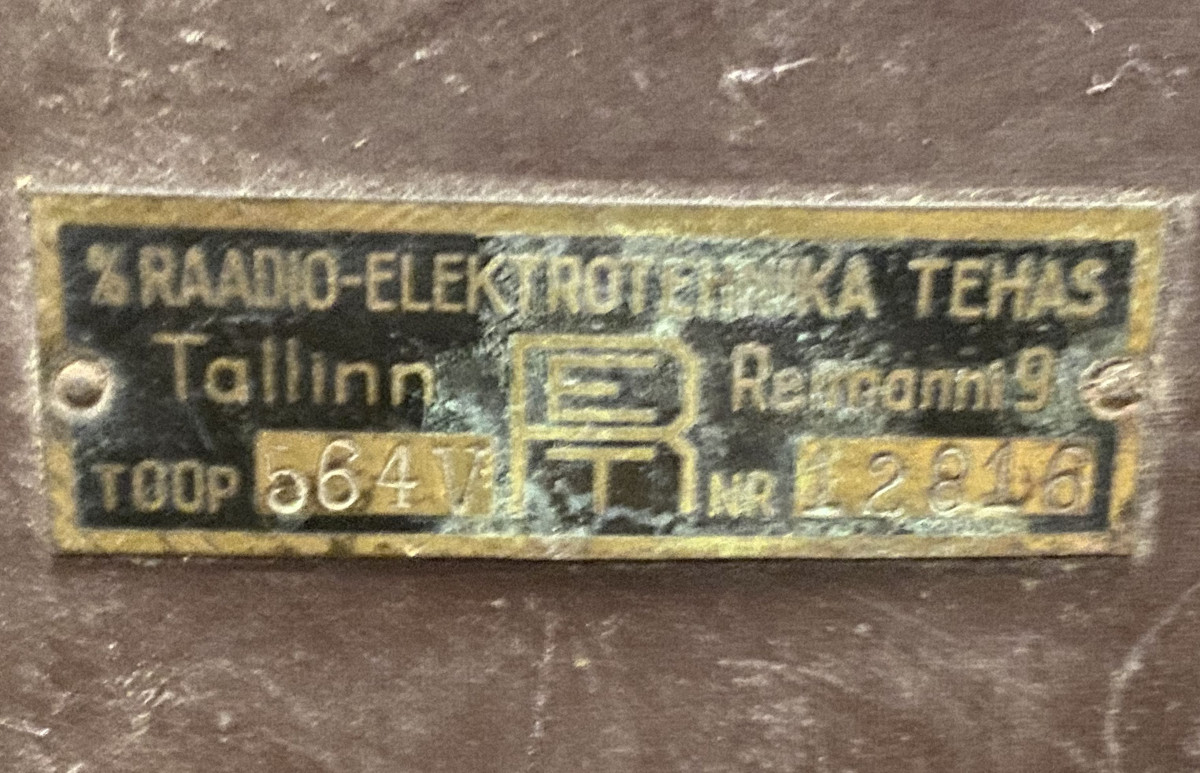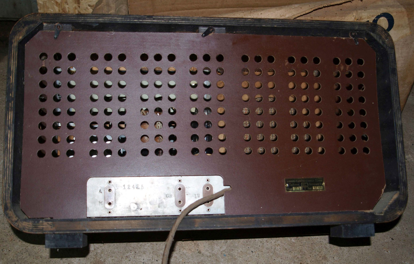 Säilinud väga originaalsena (sh lambid). Taha kleebitud raadiomaksu tasumise kviitung omaniku andmetega suvest 1941,