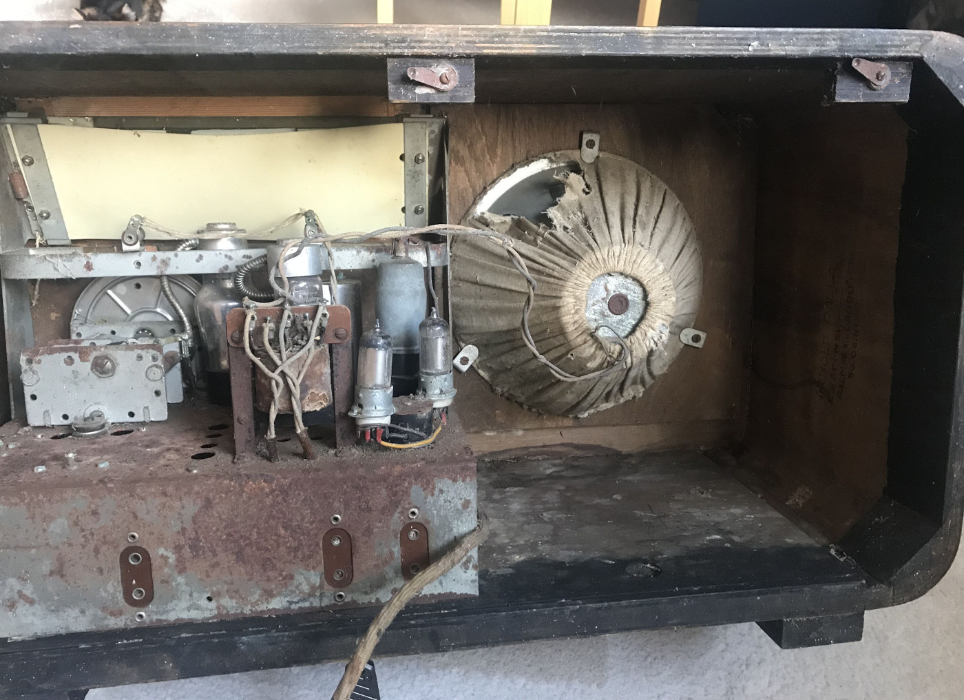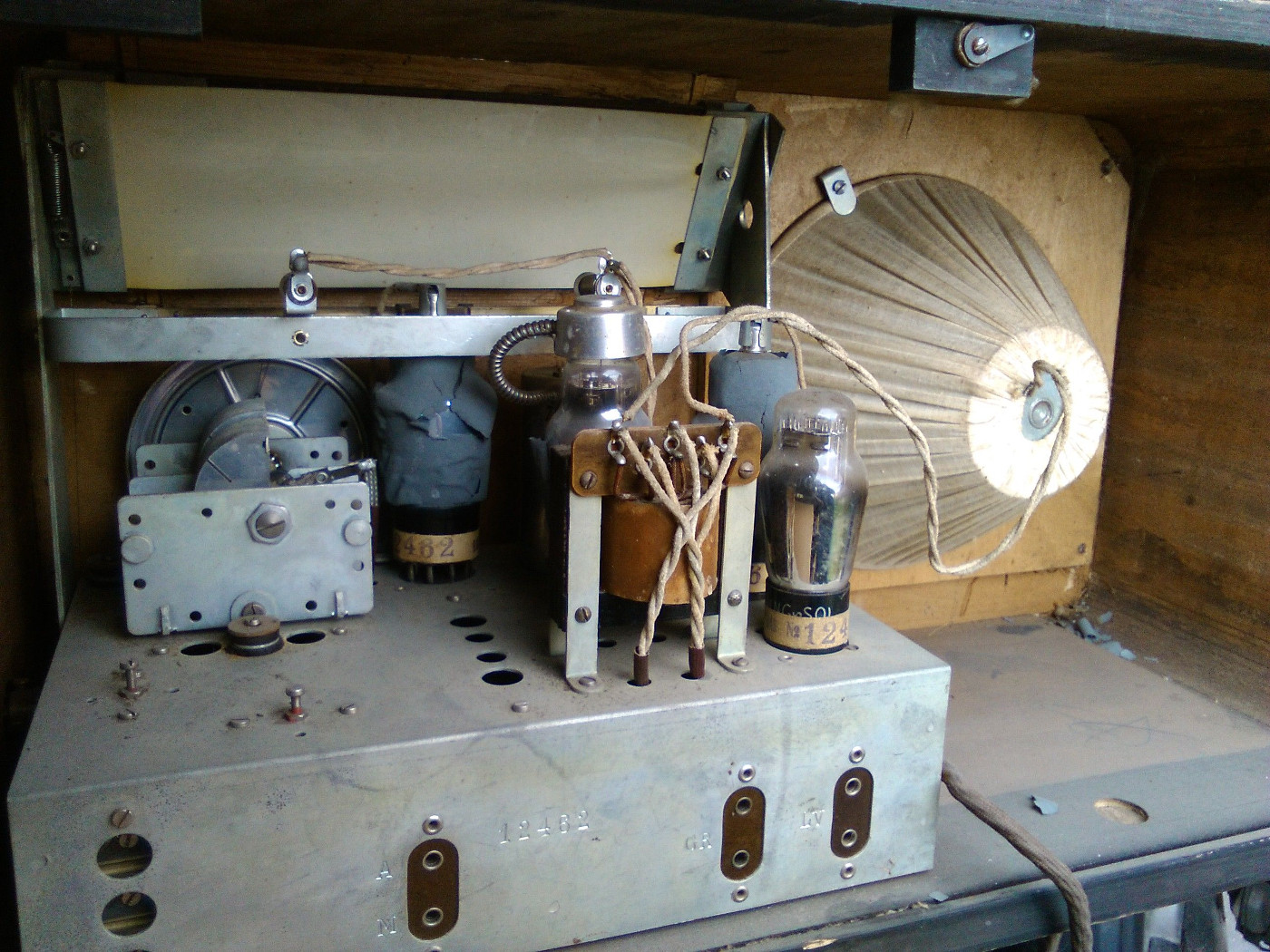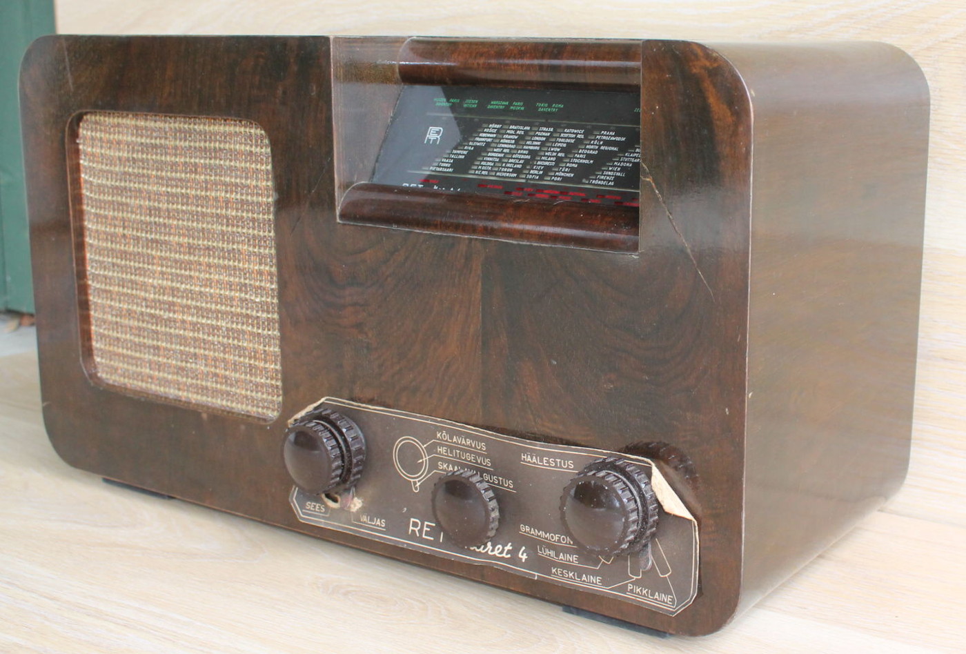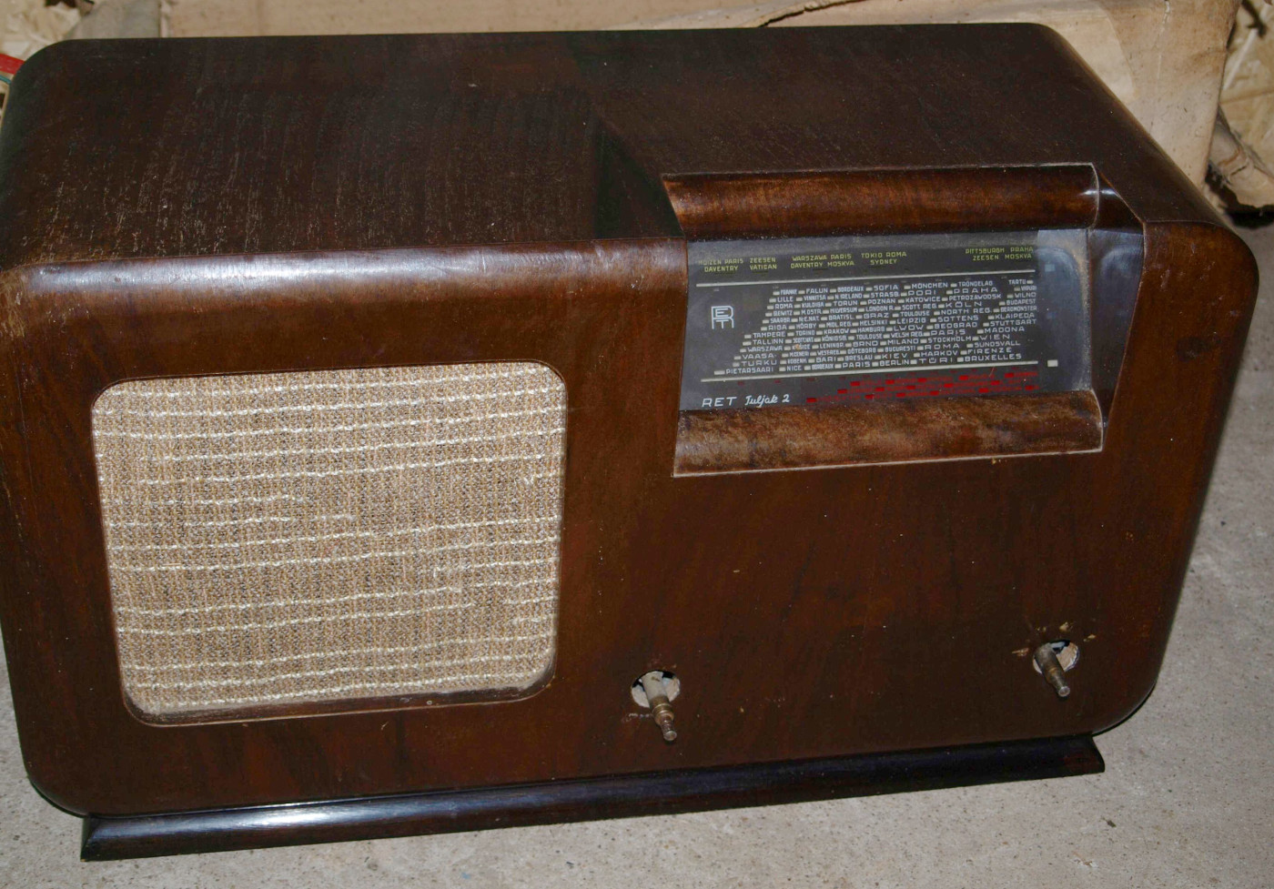 Säilinud väga originaalsena (sh lambid). Taha kleebitud raadiomaksu tasumise kviitung omaniku andmetega suvest 1941,