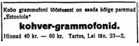 paremate välismaa grammofonidega." (Päevaleht 24.07.1930)