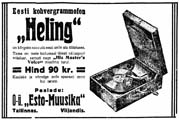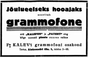grammofoni, "Kalefoni" ja "Patendi" nime all müügile saatnud, millel menu pole puudunud. ..." (Postimees 1.12.1929)