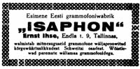 Esimene Eesti grammofonitööstus Isaphon, Ernst Ihse (30), Tallinn, Endla 9 (30)