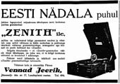Zenithi reklaamid (Pärnu Päevaleht 24.02.1931, 28.03.1931, 05.09.1931 ja 06.12.1931).