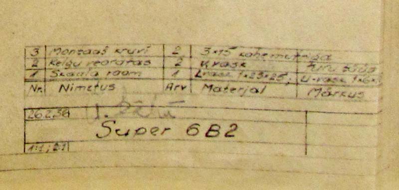 Super 6B2 ehitamine 1936. a. veebruaris, skeem. Rahvusarhiiv ERA.1569.1.2013.