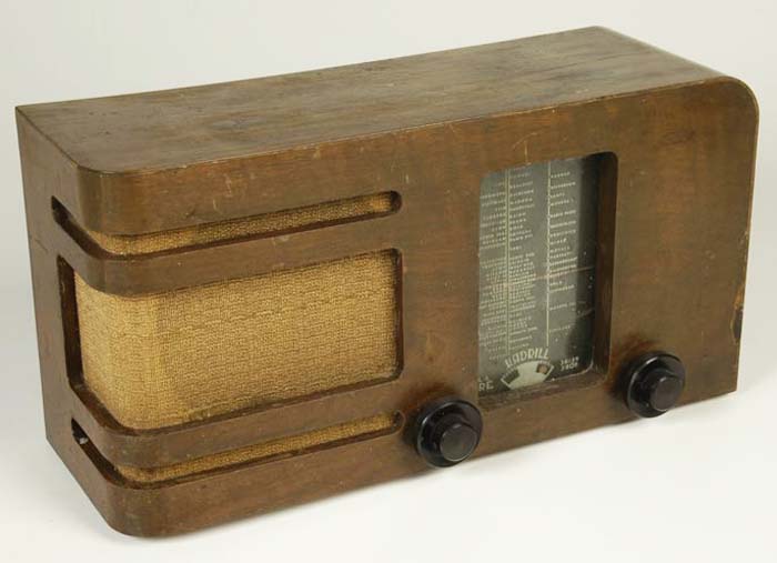 raadio firmakasti, milles olid telliskivid ja nende peal detektorvastuvõtja. Kasti