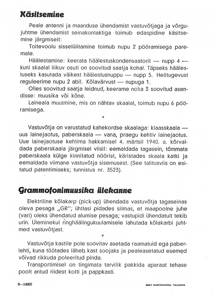 *Tõenäoliselt sõjast tingitud raskuste tõttu kergitasid raadiotehased 1939/40 hooaja jooksul aparaatide hindu.