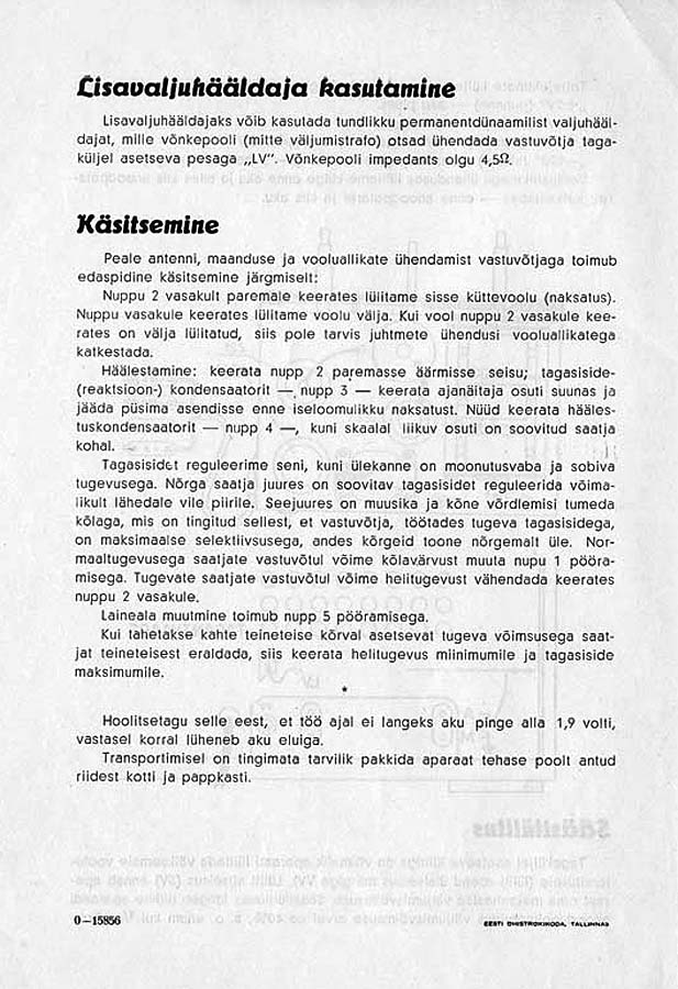 Alumine originaal kataloogifoto Eesti Ringhäälingumuuseumi kogust.
