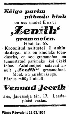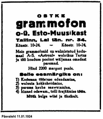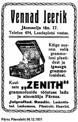 paremate välismaa grammofonidega." (Päevaleht 24.07.1930)